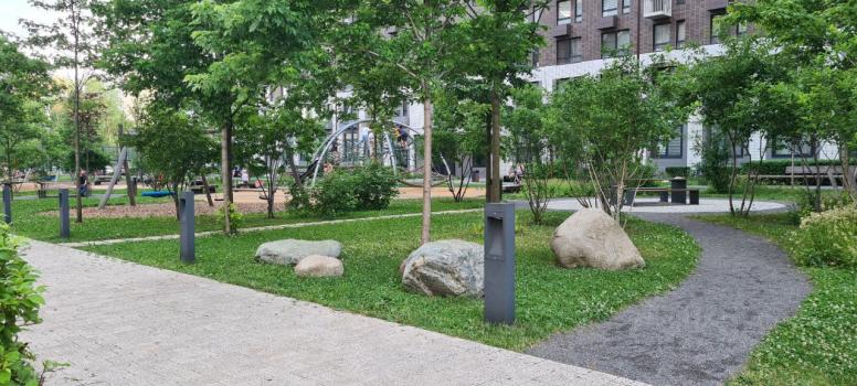 - Озелененные дворы с детскими и спортивными площадками.