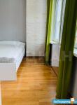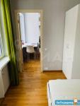 Планировка включает две жилые комнаты 12 кв.м и 7 кв.м с кроватями и вместительными шкафами, в одной из комнат есть выход на балкон.