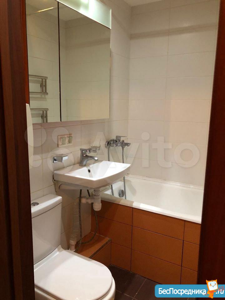 Есть все для комфортного проживания: двуспальная кровать с подъёмным механизмом, раскладной диван (раскладывается в полноценную 2-спальную кровать), шкаф с зеркалом для хранения вещей, шкафы на балконе. В совмещенном санузле качественный ремонт.