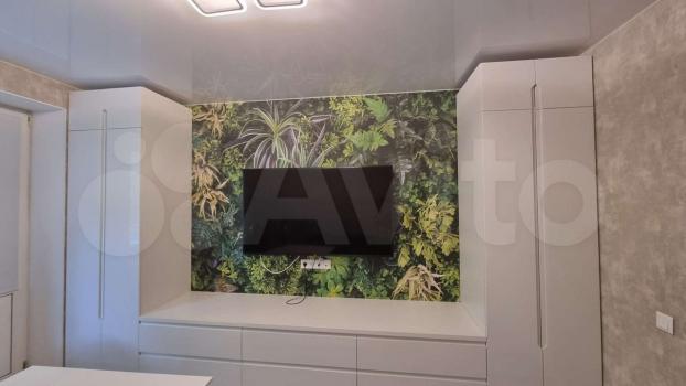 На кухне вся необходимая бытовая техника: встроенные посудомойка, духовка, свх, измельчитель пищевых отходов, а так же чайник, тостер, вафельница. Кухня совмещена с гостиной, где стоит удобный мягкий диван и висит LСD проектор, подключенный к медиаплееру Хiаоmi Мi Вох с выходом в интернет.