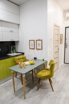 Сдаю студию без комиссий, собственник. Современный дизайн. Дом - реновированная сталинка. Студия двухуровневая, рассчитана на проживание одного, двух человек. На первом - жилая зона, на втором (антресоль) - спальная. В студии есть все необходимое для комфортного проживания.