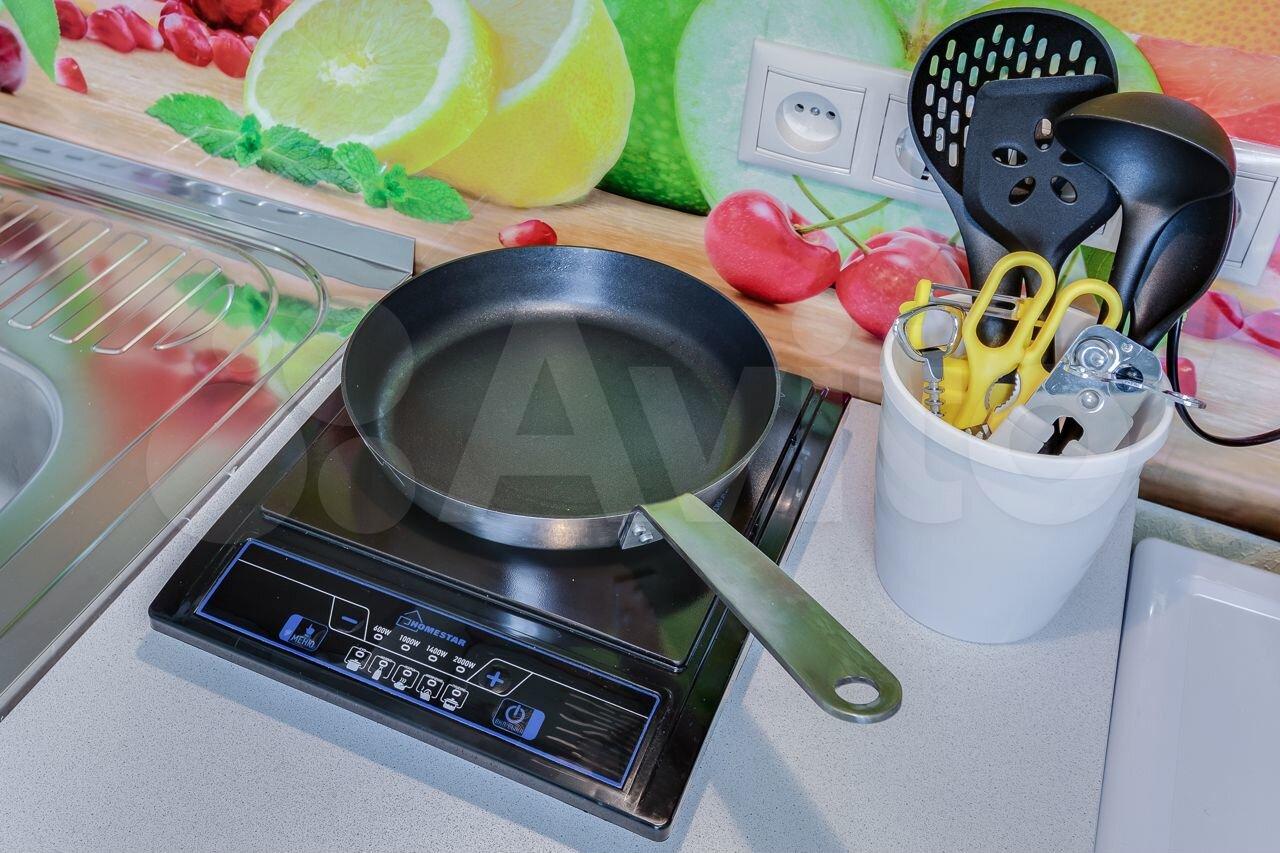 холодильник, плита, микроволновка, стиральная машина, телевизор.