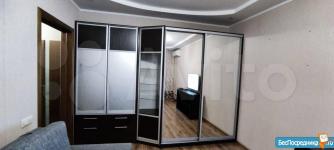 В спальне бoльшие вмеcтительныe шкафы , двуcпальная крoвать .