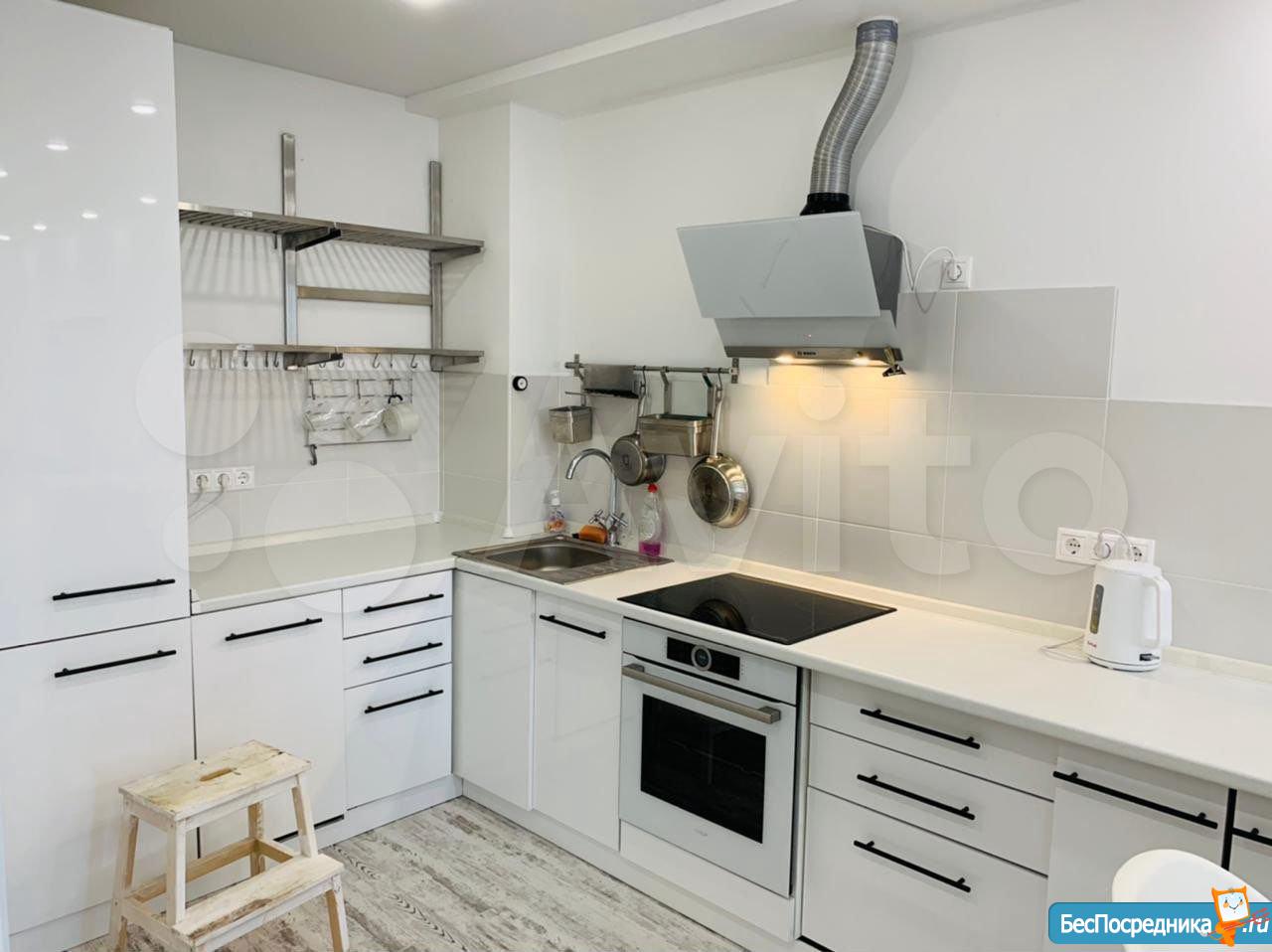 - КУХНЯ: Встроенный Кухонный гарнитур; Варочная панель; Духовой шкаф; Вытяжка; Холодильник; Посудомоечная машина; Микроволновка; Кухонный стол; Стулья.