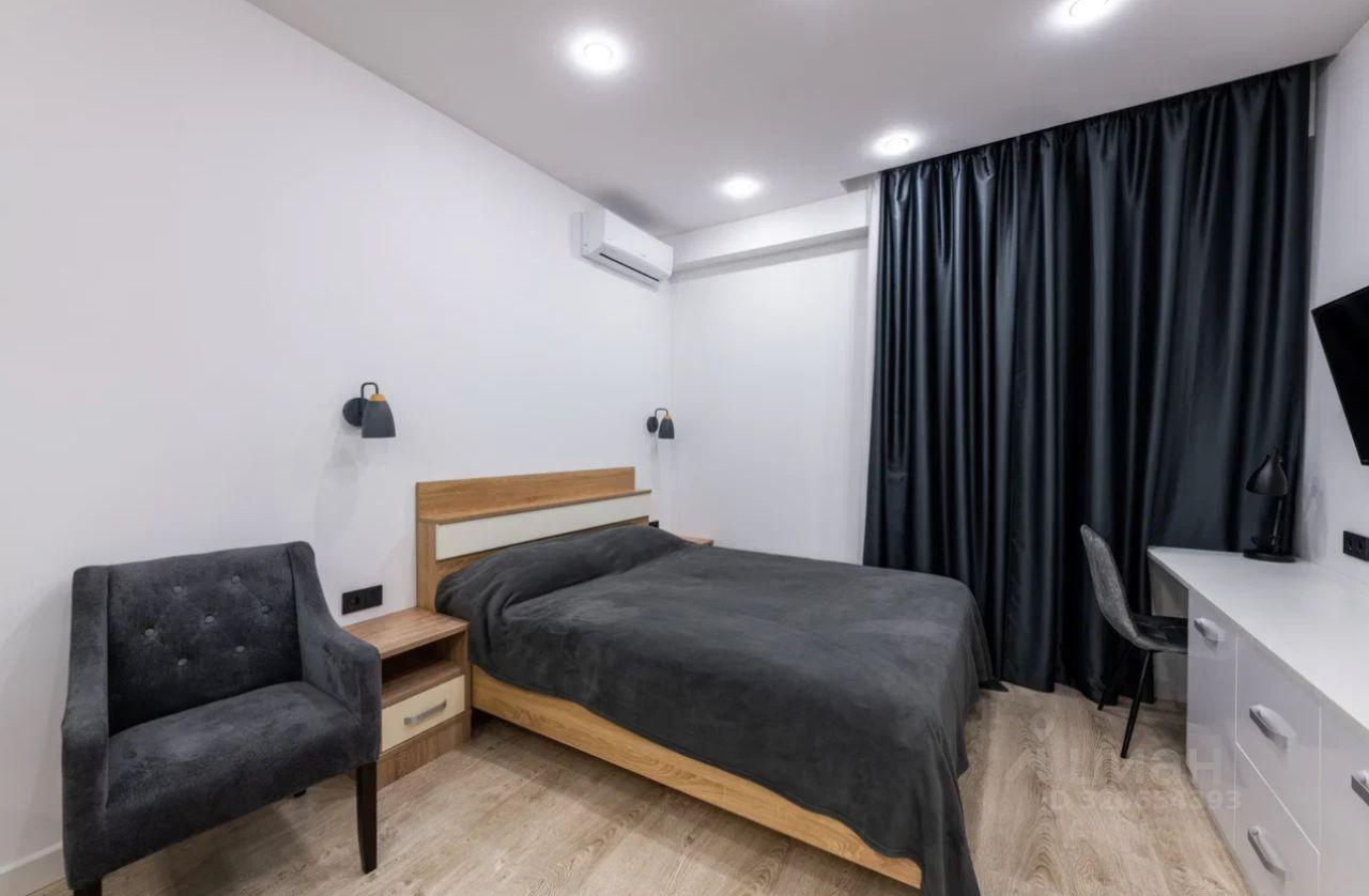 продуманная планировка: спальня, кухня-гостиная, сан.узел, ДВЕ просторные гардеробные. Дизайнерский дорогой ремонт (антрацит, дерево, парящие стены). Шикарный вид из окна! все необходимая мебель и техника имеется! 2 кондиционера, 2 телевизора.