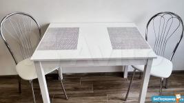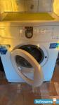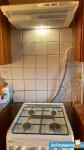 На кухне - гарнитур, набор посуды, газовая плита, эл. чайник, ручная кофемашина, мультиварка, холодильник, стиральная машина, удобные новые стулья.