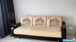 В комнате - удобный и мягкий диван с подушками и местом для хранения, разбирается на 2 места, прикроватный столик, кровать 160 см с выдвижными ящиками для хранения, вешалка, тумба под ТВ с ящиками, прикроватная тумба. Телевизор НЕ остается.