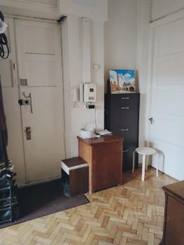 Сталинский 6-ти этажный дом с лифтом. Квартира на 6 этаже. На площадке всего две квартиры. Жилая изолированная комната 8 м2. В ней - односпальная кровать с ортопедическим матрасом, комод, тумбочка, рейл для одежды. Есть антресоли. Кухня: 7 м2. Потолки 3,50 м. Квартира после косметического ремонта. На кухне современный гарнитур, холодильник, газовая плита, микроволновая печь. Газовая колонка - всегда горячая вода. Интернет. С/У раздельный. Стиральная машина. Полы паркет. Окна ПВХ, в тихий двор. Квартира очень теплая. Въезд под шлагбаум. Парковка во дворе.