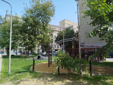 Жилая изолированная комната 18 м2. В ней - диван с ортопедическим матрасом, большой шкаф, столик, стул, раздвижной столик, тумбочка. Кухня: 7 м2. Потолки 3,50 м. Антресоли. Квартира после косметического ремонта. На кухне современный гарнитур, холодильник, газовая плита, микроволновая печь. Газовая колонка - всегда горячая вода. Балкон в комнате. Интернет. С/У раздельный. Стиральная машина. Полы паркет. Окна ПВХ, в тихий двор. Во дворе современная спортивная площадка. Квартира очень теплая. Въезд под шлагбаум. Парковка во дворе. Во дворе спортивная площадка с современным оборудованием.