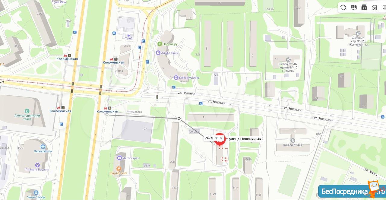 от метро Коломенская 3 минуты пешком