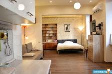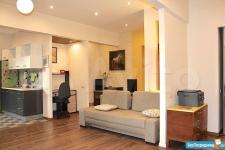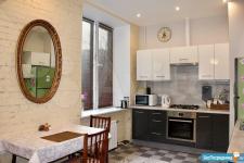 Вся мебель новая. Есть вся необходимая посуда и текстиль. В ванной комнате полноценная ванна, в туалете гигиенический душ. Окна выходят как на улицу, так и во двор, напротив большой парк.