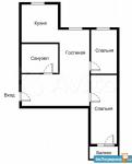Общая площадь - 60 квадратов. Две изолированных (смежных) спальни, большая кухня, туалетная и ванная комнаты, балкон-лоджия.