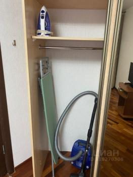 Вместительная гардеробная с гладильной доской и пылесосом.