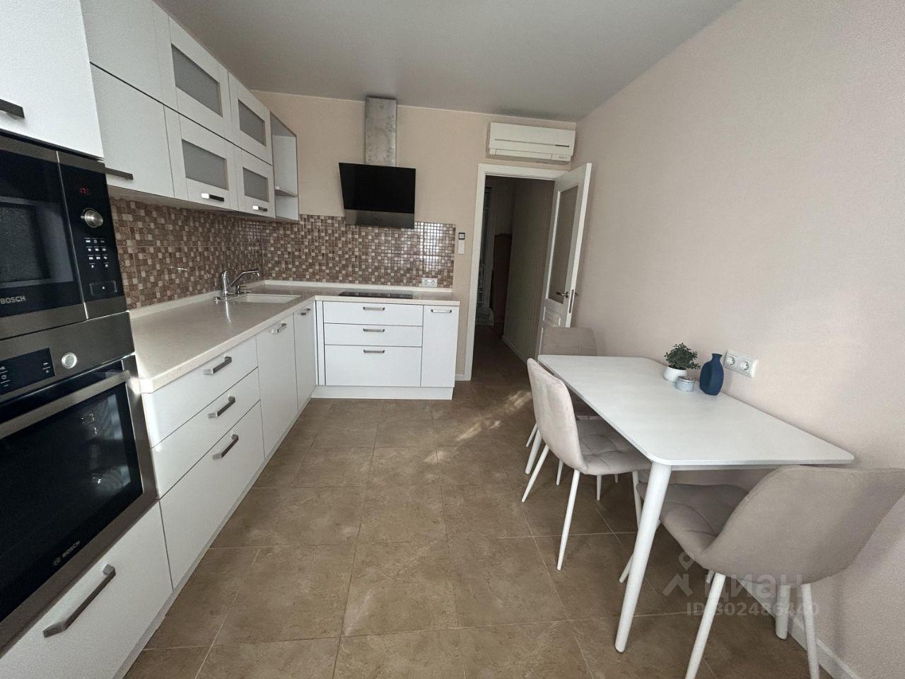 В квартире отличный ремонт, имеется вся необходимая мебель и техника, включая кондиционеры на кухне и в комнатах, встроенную технику BOSH на кухне, стиральную машину, два телевизора, пылесос.