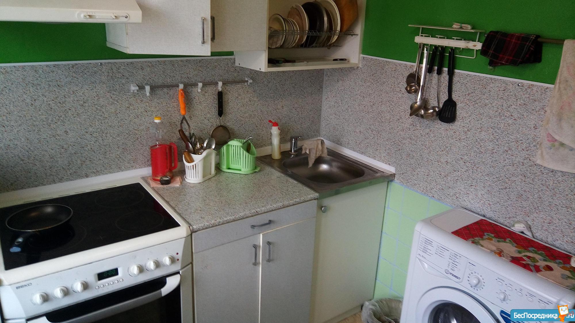 Кухня 7,5м, также после ремонта. На кухне раковина, линолеум новые. Плита керамика, СВЧ печь , холодильник, стиральная машина.