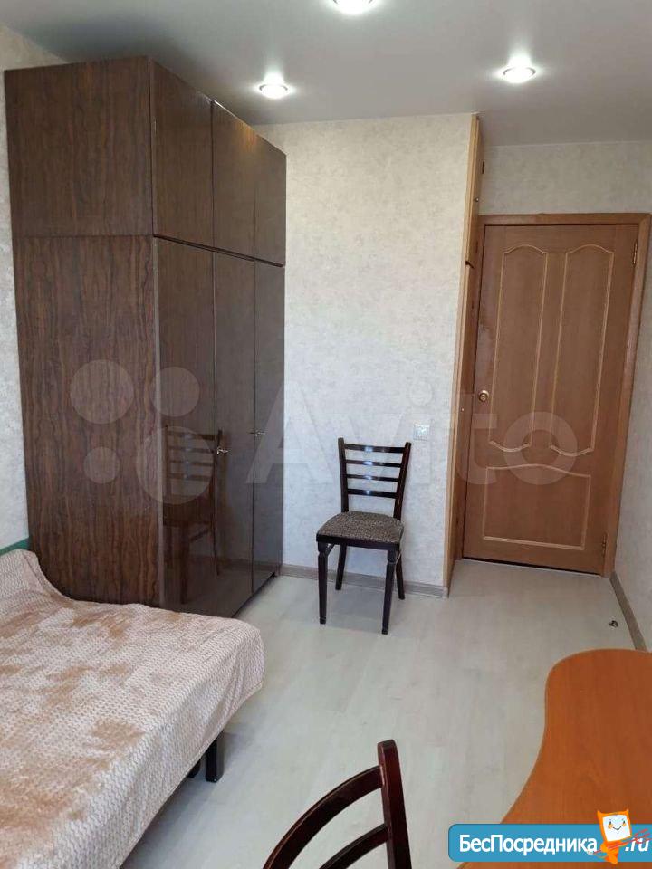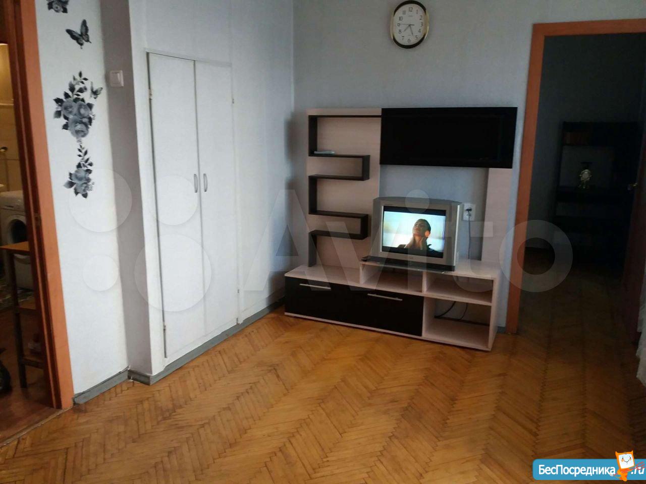 Сдается комната 19 кв.м. (с балконом) в 2-х комнатной квартире на длительный срок. В комнате шкаф, большой раскладной диван, раскладное кресло, журнальный столик, телевизор.