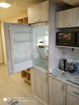 Кухонная зона: встроенные шкафы, монолитная столешница, качественная встроенная электроварочная панель, вытяжка. Из мебели диван, шкафчики, необходимое для жизни (фото до заезда арендаторов). Район давно обжитой, во дворе детская площадка, в доме магазин «Верный», в соседнем «Магнит».