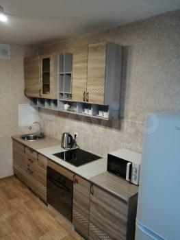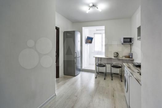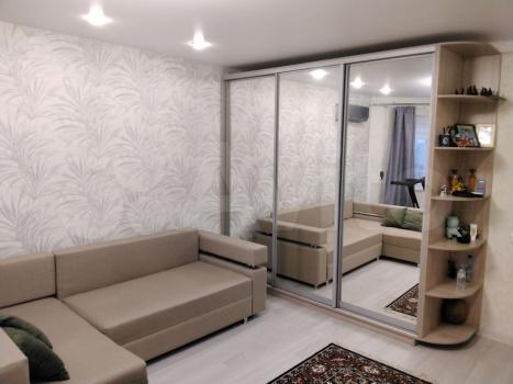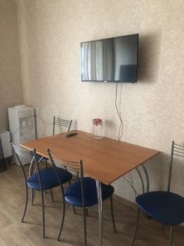 Квартира выполнена в стиле евроремонт и полностью готова для комфортного проживания. Просторная комната обставлена необходимой мебелью, а на кухне есть все для приготовления пищи. В квартире установлен холодильник и стиральная машина. Санузел совмещенный, оснащен душевой кабиной.