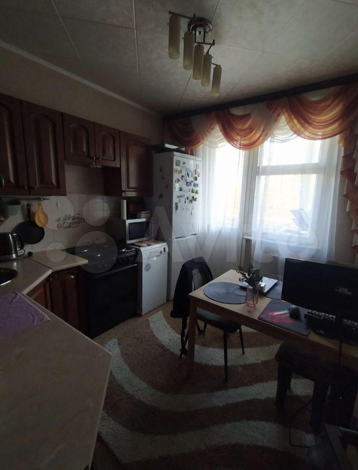 Уютная квартира с очень комфортной планировкой (на фото): кухня и прихожая большая, распашонка, гардеробная комната (или кладовка). Огромный ТВ.