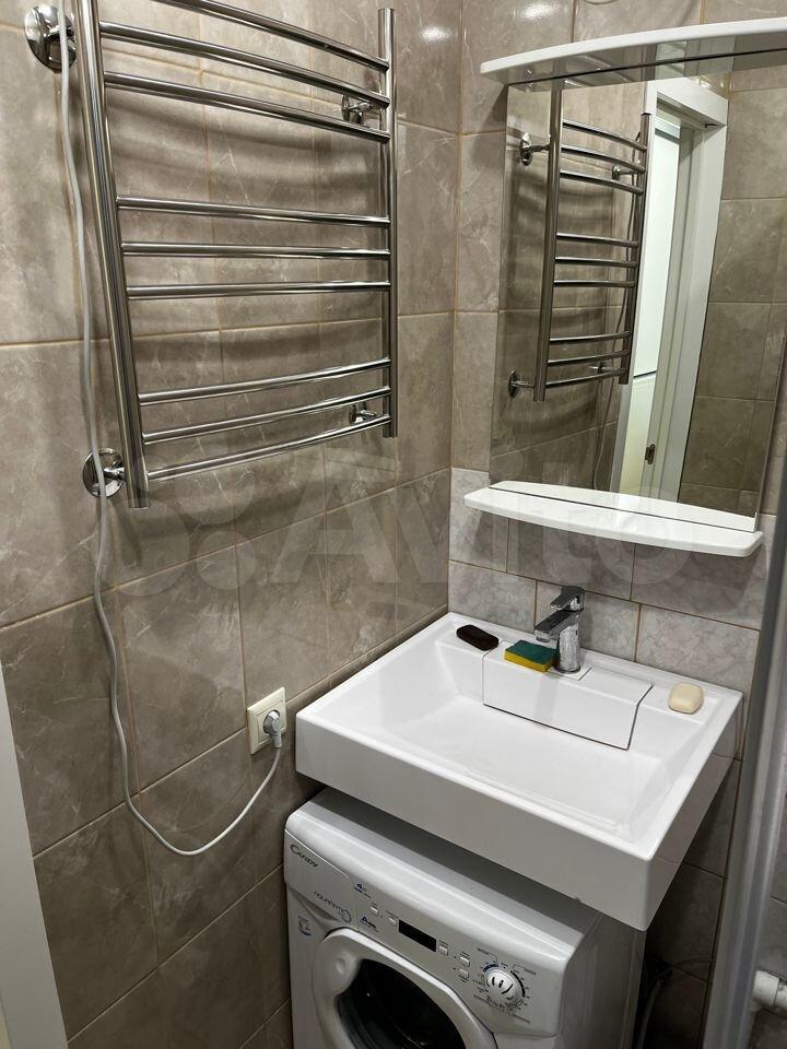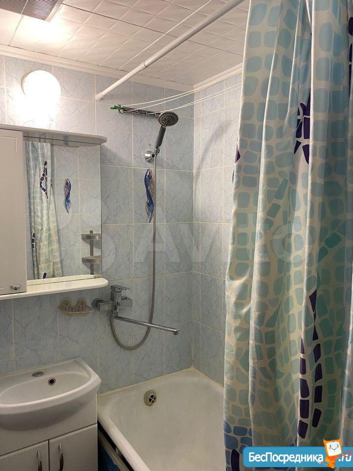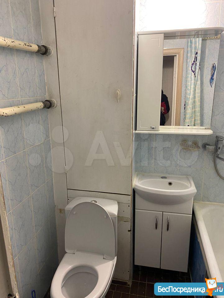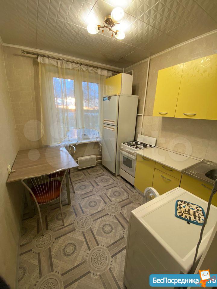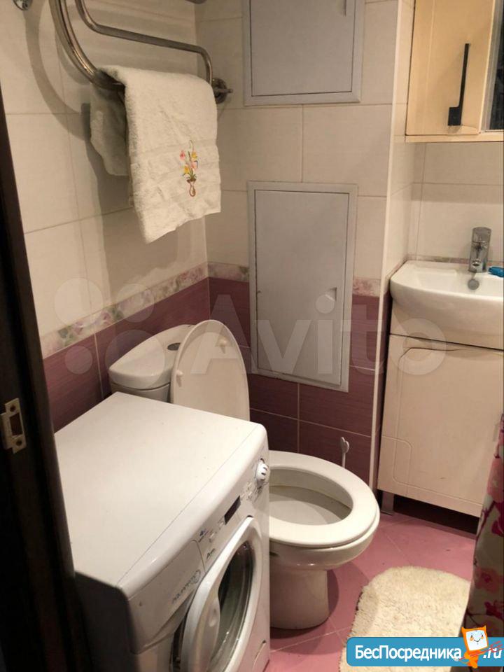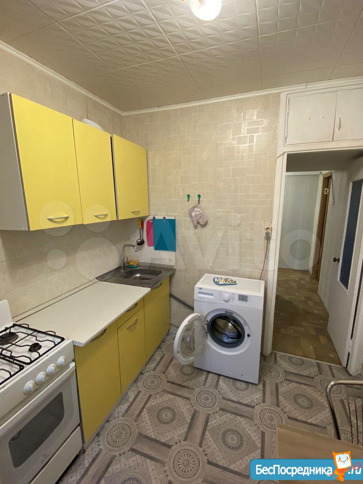 Кухня 6 м² с кухонным гарнитуром и базовой техникой: плита, холодильник. В ванной — стиральная машина. Квартира с аккуратным косметическим ремонтом, чистая и ухоженная, готова к проживанию.