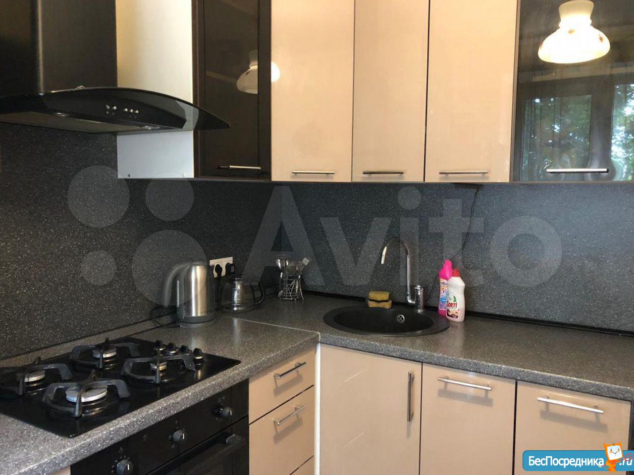 В квартире полностью обустроенная кухня: микроволновка, холодильник, газовая плита с духовкой, вместительные ящики. Ванная с новой стиральной машинкой. В большой комнате два кресла, стенка, шкаф-купе во всю стену, двухспальный диван и односпальная кровать с новым удобным матрасом (могу поставить еще вторую такую же).
