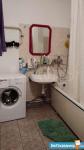 Совмещенный сан узел с удобной ванной, хорошим освещением, большой раковиной с зеркалом и стиральной машиной Bosch.