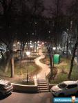 Благоустроенный двор со спортивной секцией, с пешеходными дорожками.