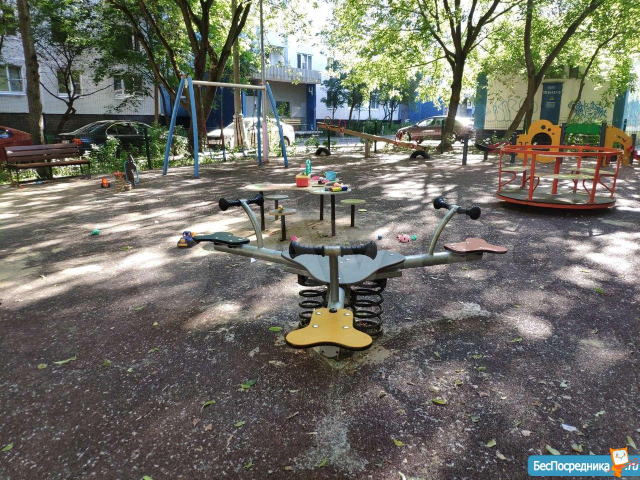 Дворик тихий, зелёный, обустроенный двумя игровыми площадками для детей разного возраста.
