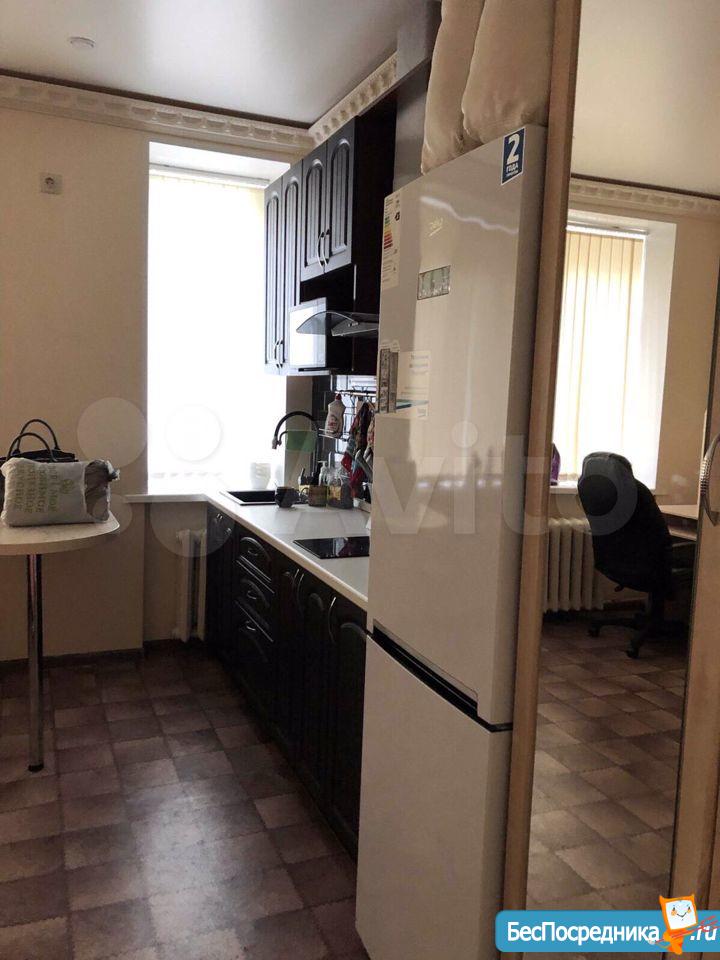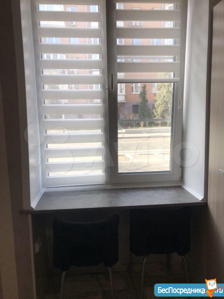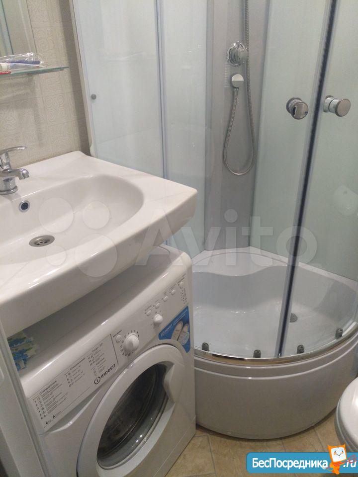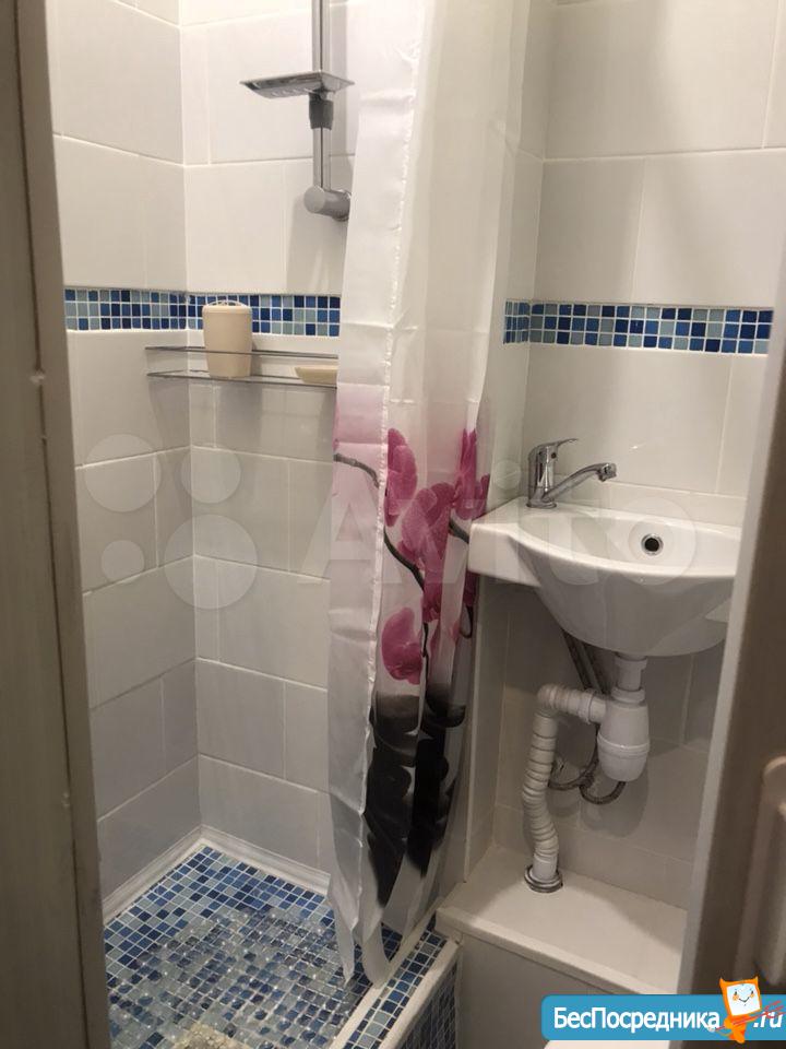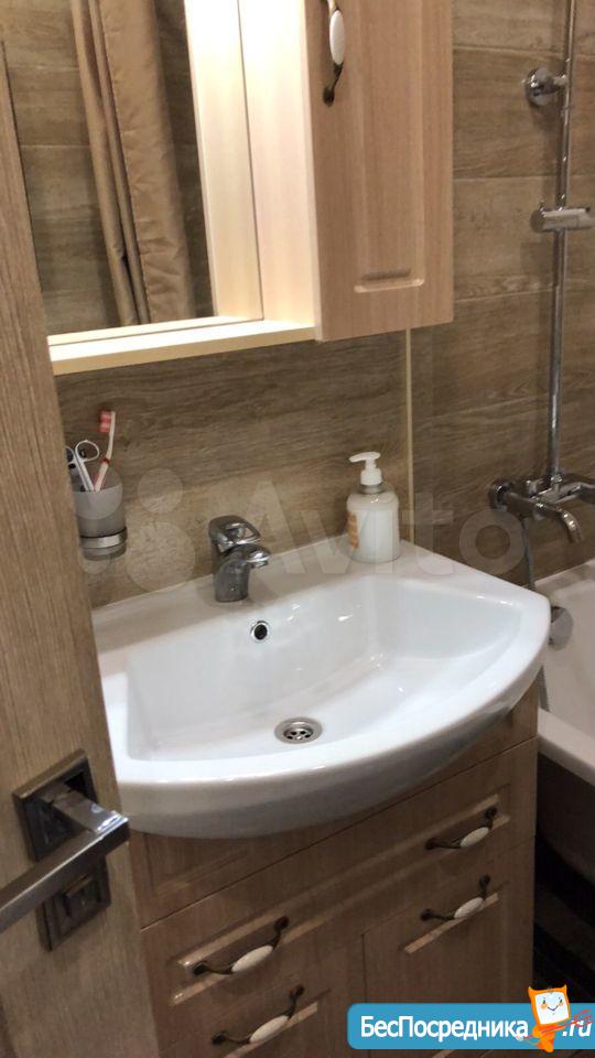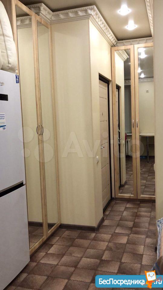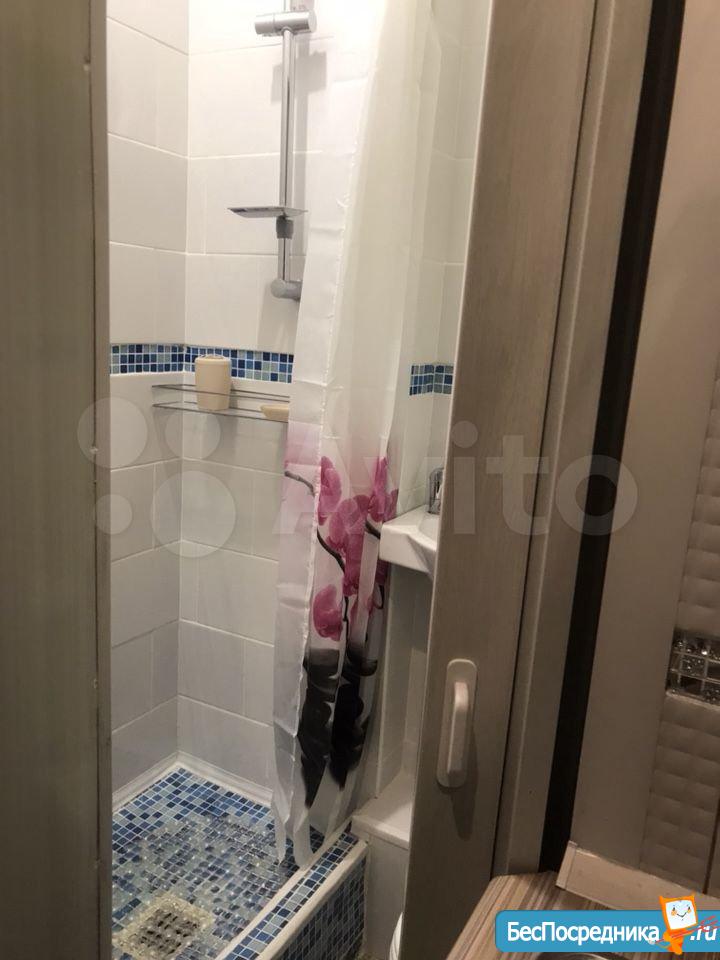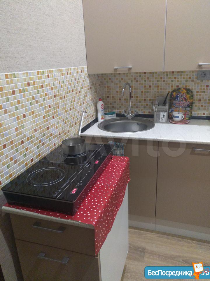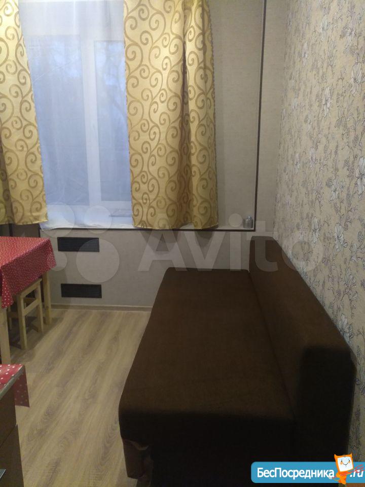 Студия. Отличный ремонт. Новая кухня, вся посуда, техника и мебель имеется: холодильник, мультиварка, шкафы, стол, диван (раскладывается в двуспальный), стиральная машина, кастрюли, сковородки, столовые приборы. Залог за 1 месяц.