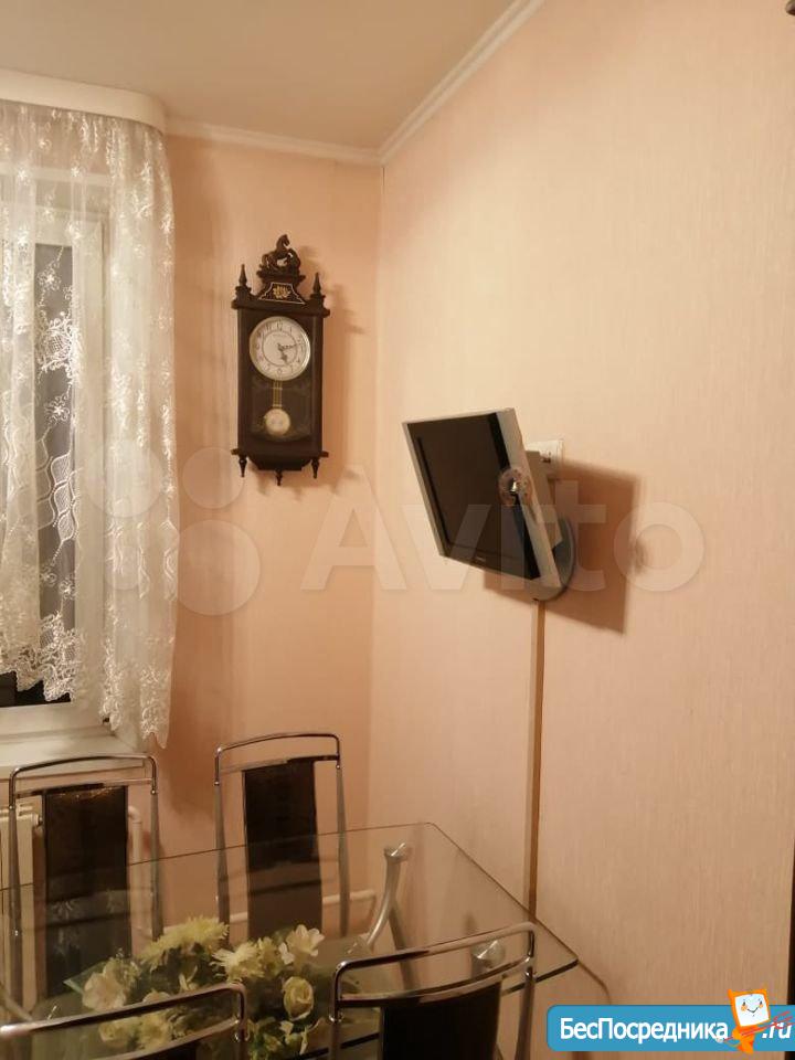 В квартире сделан косметический ремонт. Есть вся необходимая мебель как в комнате, так и на кухне. Из техники: холодильник, телевизор и стиральная машина. Ванная комната оснащена ванной и совмещена с санузлом. Также есть балкон, где можно наслаждаться свежим воздухом.