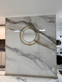 Из элементов декора присутствует плиточный мраморный пол, латунные вставки в стены, зеркала. В квартире после ремонта еще никто не жил.