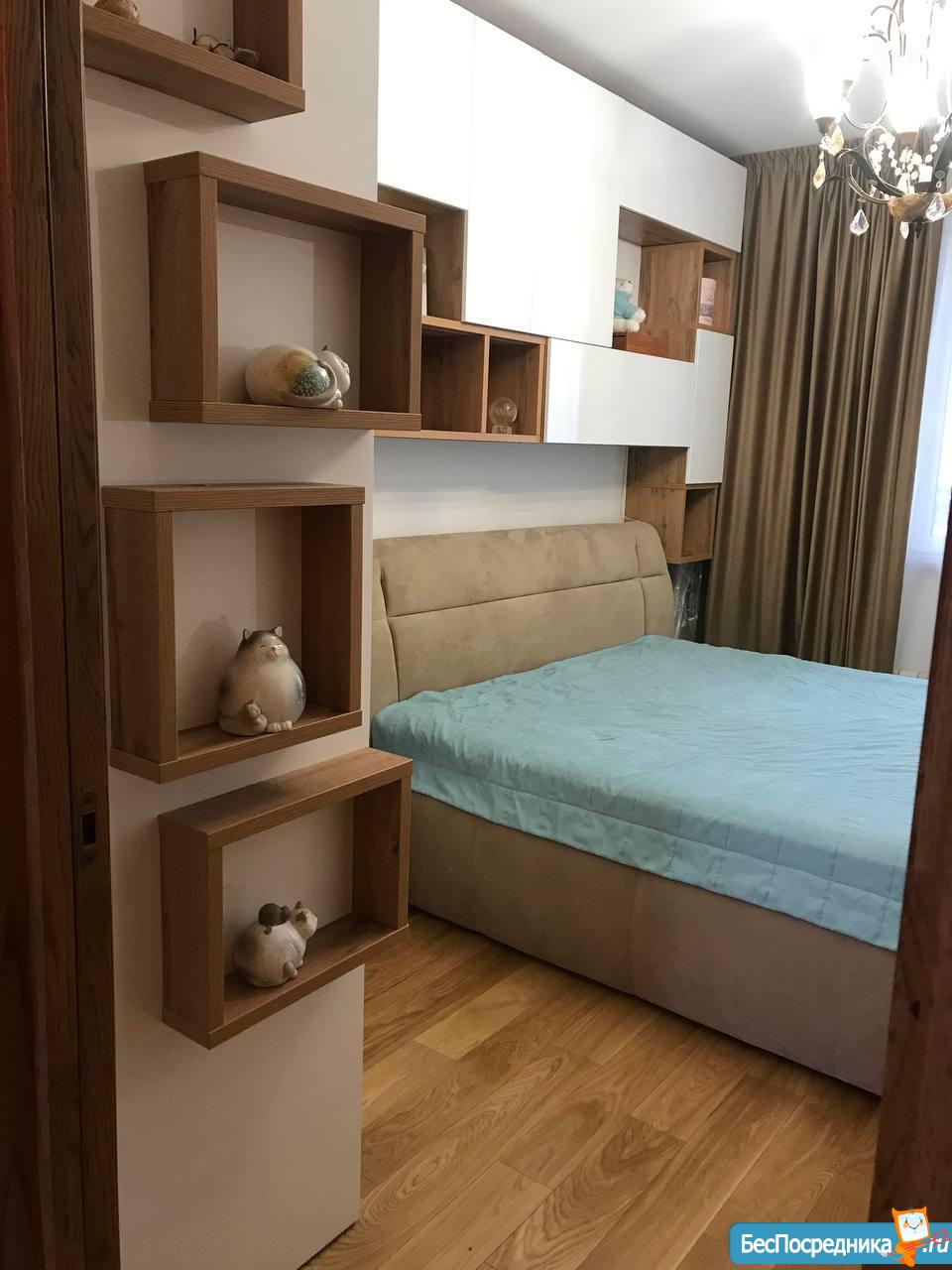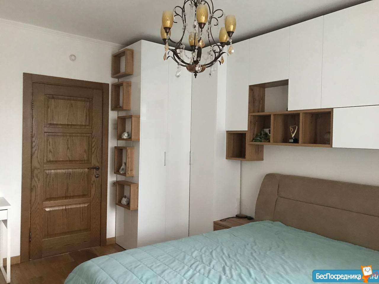 Спальня для взрослых с выходом на лоджию, современная новая мебель, большой вместительный шкаф, новая кровать размер kingsize.