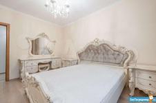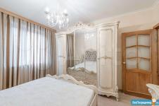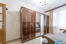 Спальня с большим шкафом, кровать с подъемным механизмом, двумя прикроватными тумбами, часами-колонкой и торшером. Зал с диваном, который при желании возможно разложить и будет два дополнительных спальных места. Также в комнате имеется кондиционер, стеллаж и большой комод.