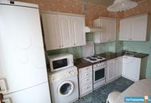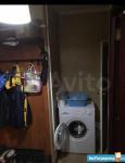 На кухне холодильник, СВЧ, плита с духовкой, стиральная машина, встроенная мебель.