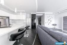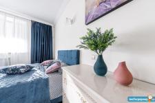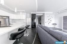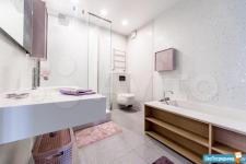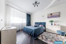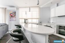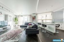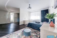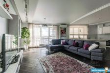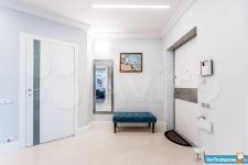 Площадь квартиры 120м2. Просторная прихожая, кухня + гостинная (салон), спальня, кабинет-спальня, гардеробная комната, 2 санузла с постирочной.