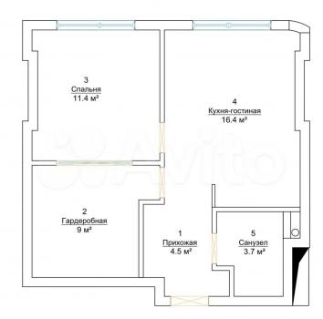 Однушка с большой кухней-столовой. Комната разделена на 2 части ( одна спальня, вторую часть можно использовать как детскую или гардеробную 9 кВ.м).
