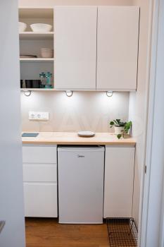 Эта студия одна из четырех, которые расположены в едином пространстве. В каждой студии своя кухня и туалет. Общий коридор объединяет все студии.