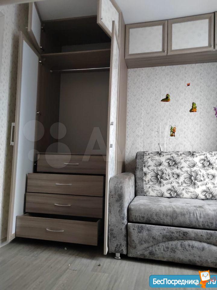 Комната не большая, имеется все необходимое: диван-кровать, шкаф, комод,тумба.