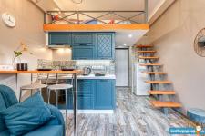 Сдается двухуровневая студия с современным дизайнерским ремонтом и всей необходимой мебелью и техникой( стиральная, посудомоечная машина,плита, микроволновая печь, телевизор,шкаф, комод и т. д) . Площадь первого уровня-20 метров, второго 6 м кв.