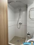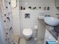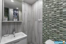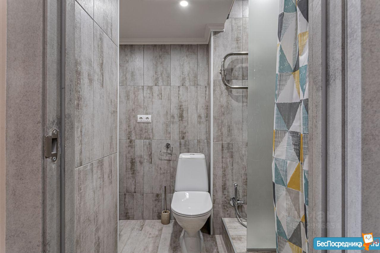 Вам понравится светлая ванная комната с просторной душевой кабиной.