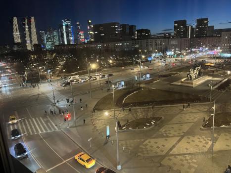 Окна выходят на площадь Краснопресненская Застава, на солнечную сторону (на окнах установлены рулонные шторы от слишком яркого света)