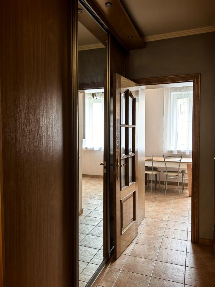 Сдается на длительный срок. Три раздельные комнаты, куxня, санузел, ванная комната и балкон. Кухня оборудована встроенной кухней с варочной панелью, духовым шкафом и холодильником. В спальне: двуспальная кровать, шкаф, тумба. Гостиная комната с кожаным диваном, два кресла, шкаф. Во второй спальне: кожаный диван и шкаф. Также имеется стиральная машинка. Рассмотрим приличных платежеспособных жильцов, предпочтение семейным, без домашних животных. 90 000 руб. в месяц + счетчики (электроэнергия, вода).