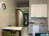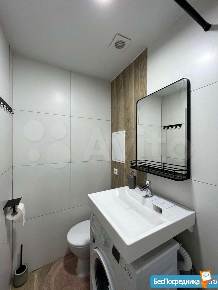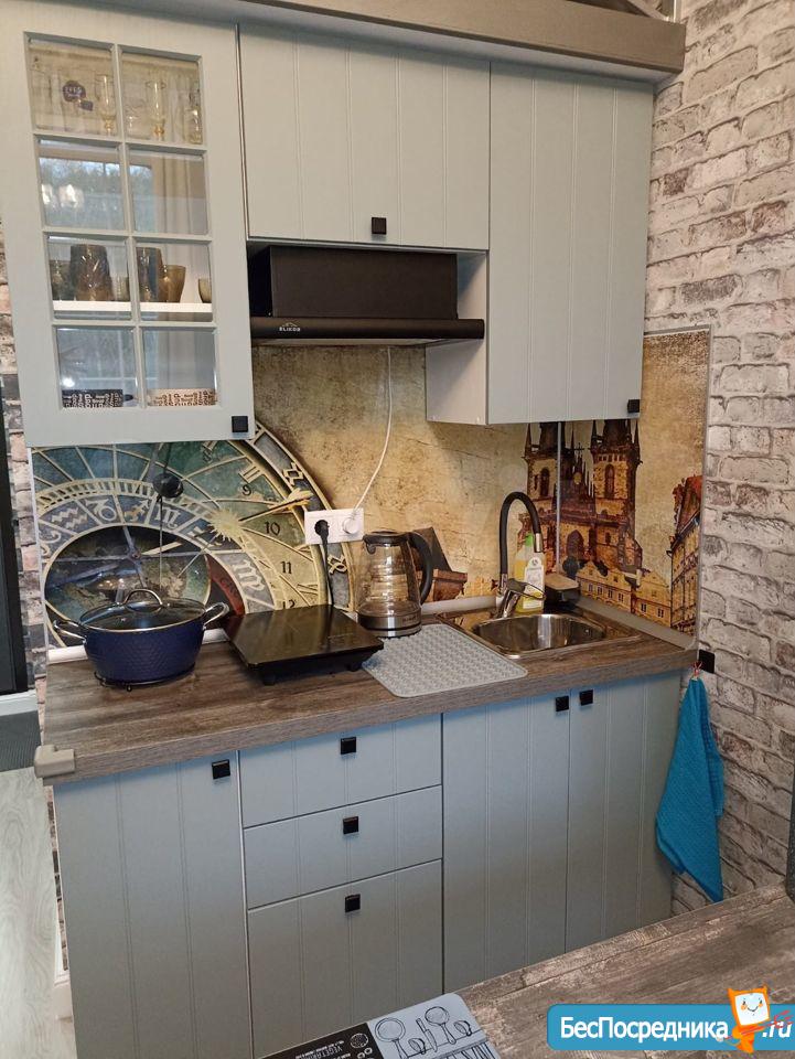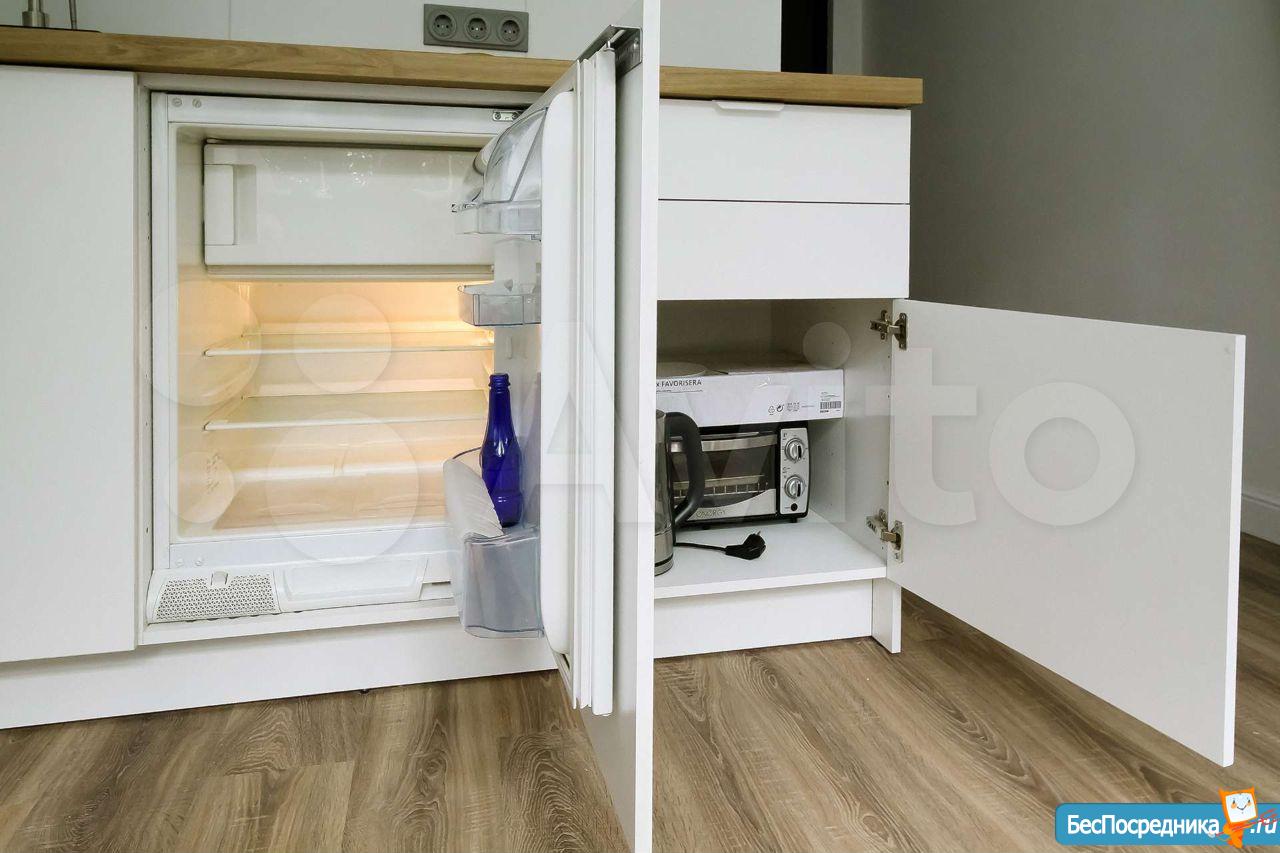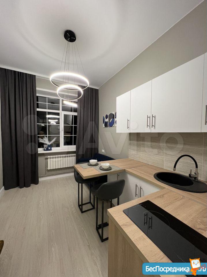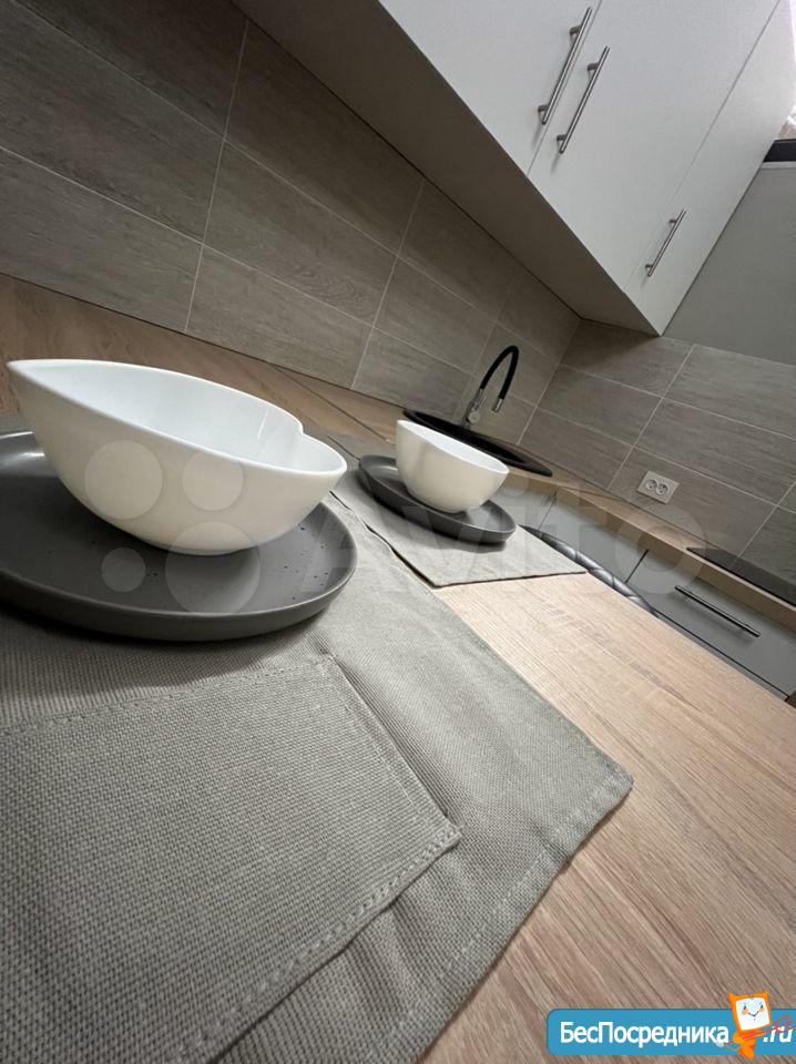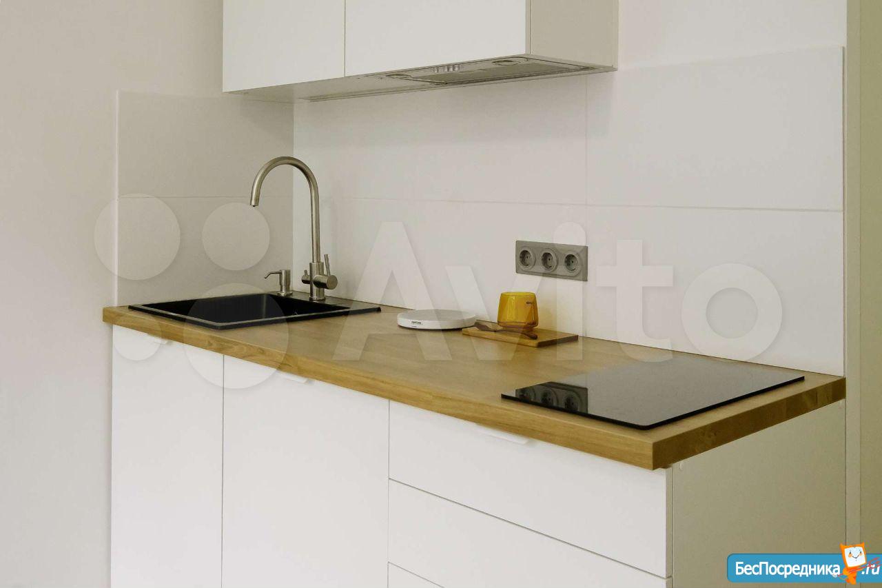 Сдается впервые, после ремонта, апартамент оборудован полноценной кухней с местами для хранения, вытяжная вентиляция, встроенный холодильник, индукционная плита 2 конфорки, встроенные фильтры для питьевой воды, чайник, набор посуды и прочие необходимые приборы.
