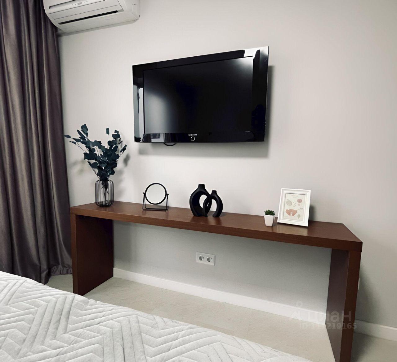 В квартире есть все необходимое для комфортной жизни: стиральная и посудомоечные машины, кондиционер, телевизор, пылесос, посуда.