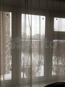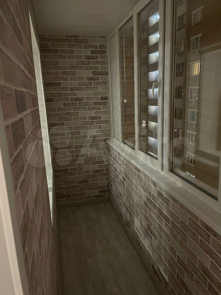 Большая застекленная утепленная лоджия с рабочим местом и вместительным шкафом для дополнительного хранения вещей.