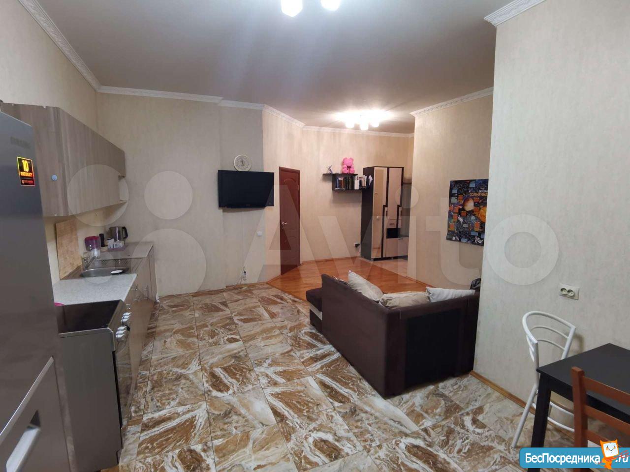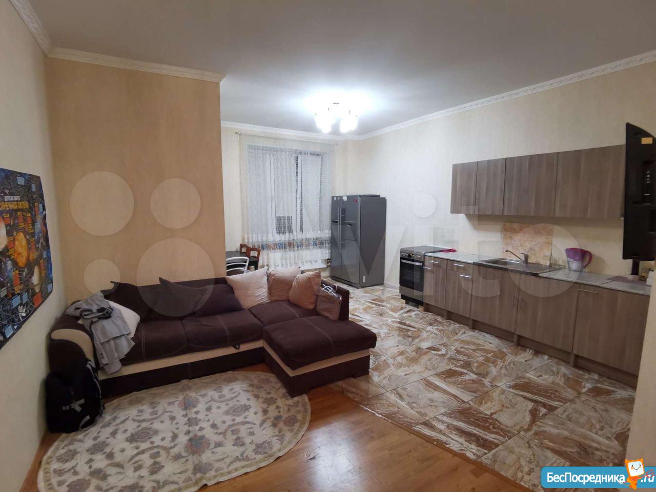 Большая комната с кухней, спальня, просторный коридор и санузел. свежий ремонт. Бытовая техника и мебель в наличии.