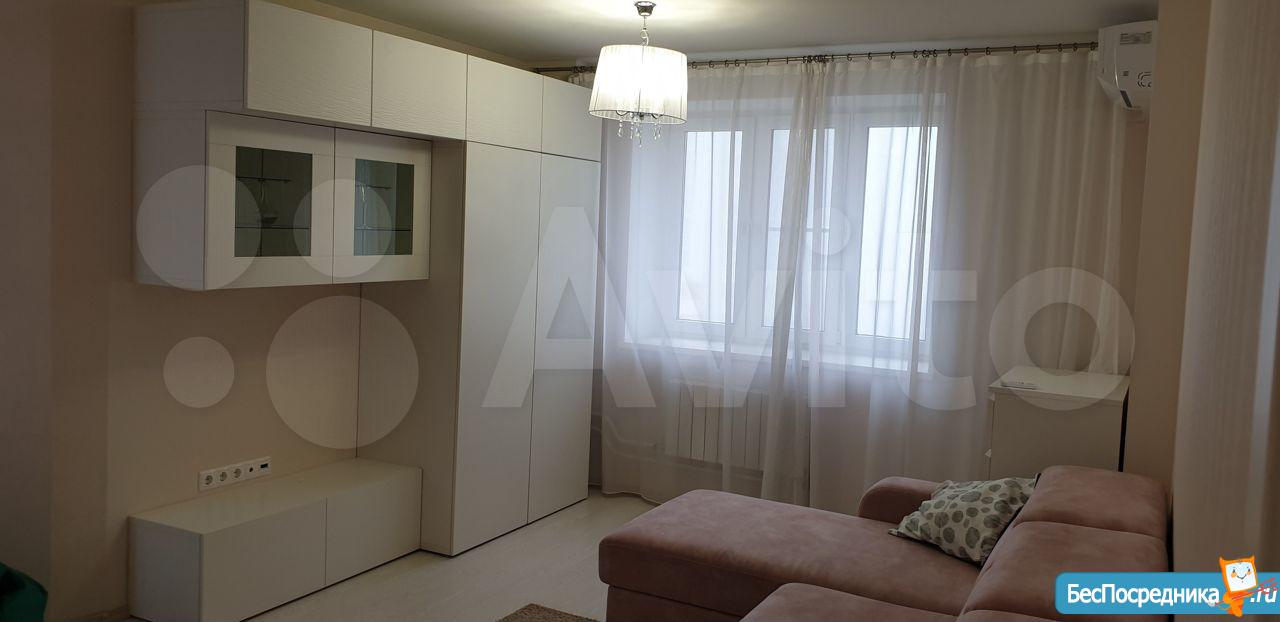 1 ком квартира, сдаётся на длительный срок. Ремонт 2015 года,кухня с встроенной техникой. В коридоре гардероб. Стиральная машина. В комнате двуспальная кровать, диван, комод, стеллаж, стол и 2 стула. В подъезде консьерж и камеры. Рядом с домом школа и детсад. Окна выходят на парк. Собственник. Оплата 28000+ вода и свет по счетчикам. Залог за последний месяц. Агентов просьба не беспокоить. Квартира будет готова к сдаче с 02.05.21