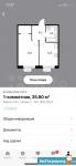 Общая площaдь: 33,7 кв. м.