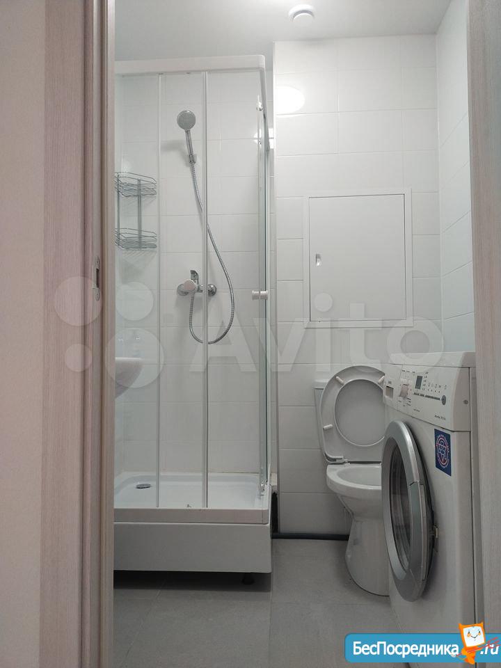 Есть туалет, раковина, душевая кабина. Техники нет, мебели нет.