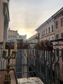 Сдаётся уютная студия в историческом центре Москвы на Тверской улице. Общая площадь квартиры — 18 кв. м, она расположена на 3-м этаже 6-этажного кирпичного дома 1917 года постройки. Высокие потолки 3.6 метра создают ощущение простора. Окна выходят во двор.